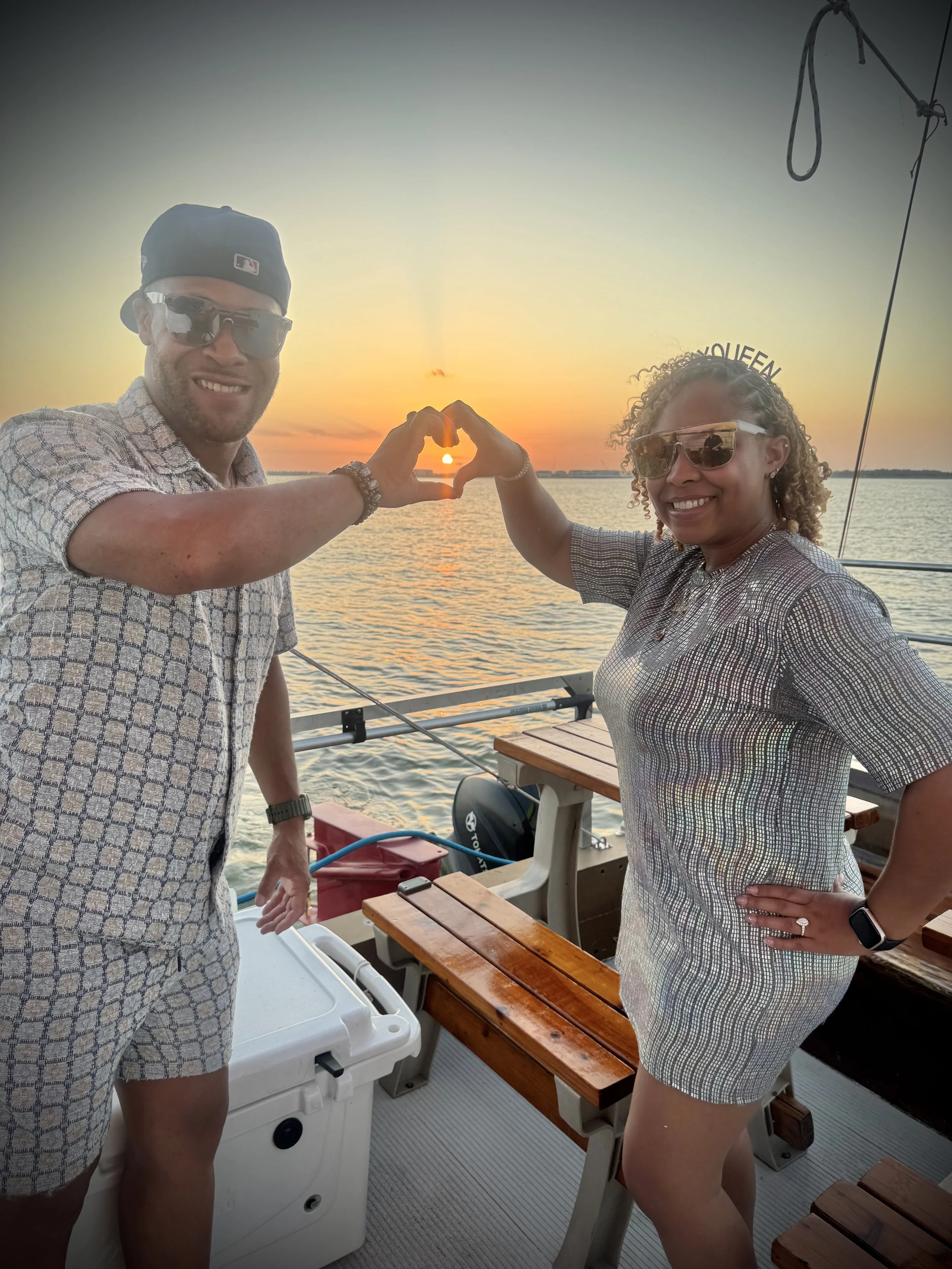 We met in 2019, in response to Dereka match making her two best friends. Damien was seen on an IG video stating he was looking for his “wife” and didn’t want to be the last un-married Line Brother standing! Mutual friends saw the video and pitched it to Dereka. She shot her shot in Damien’s DM! They hit it off immediately, bonding over a quarentined lock-in. Laying the foundation to a healthy relationship. They were engaged in April of 2025, and now they’re getting married!